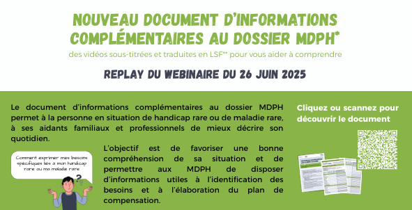 Nous vous avions signalé en juin dernier, le webinaire de présentation du document complémentaire au dossier MDPH conçu pour les personnes porteuses d’un handicap rare.